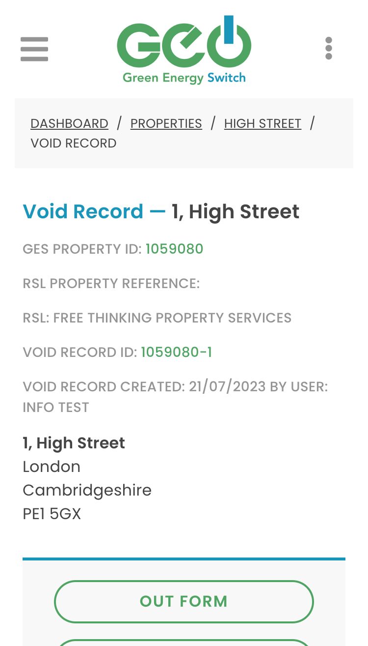 The GES void management system is an online portal that allows them and their customers to manage property energy billing from the point where a tenant gives notice, through the vacant period, until a new tenant moves in. Cloud-based CRM solution for Customer and End-User contact.