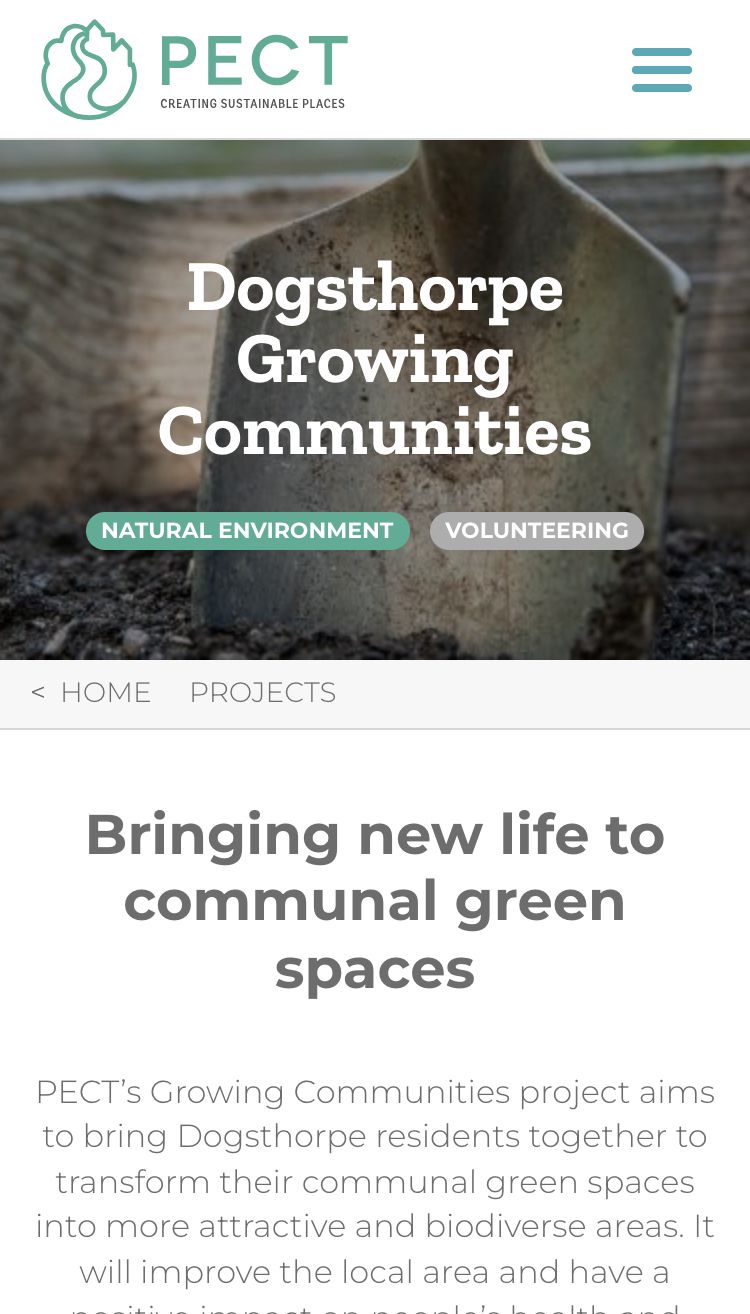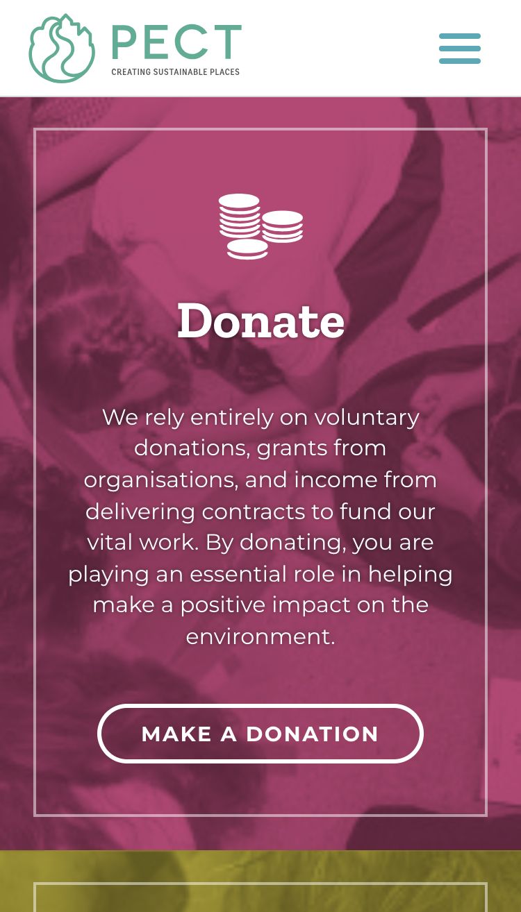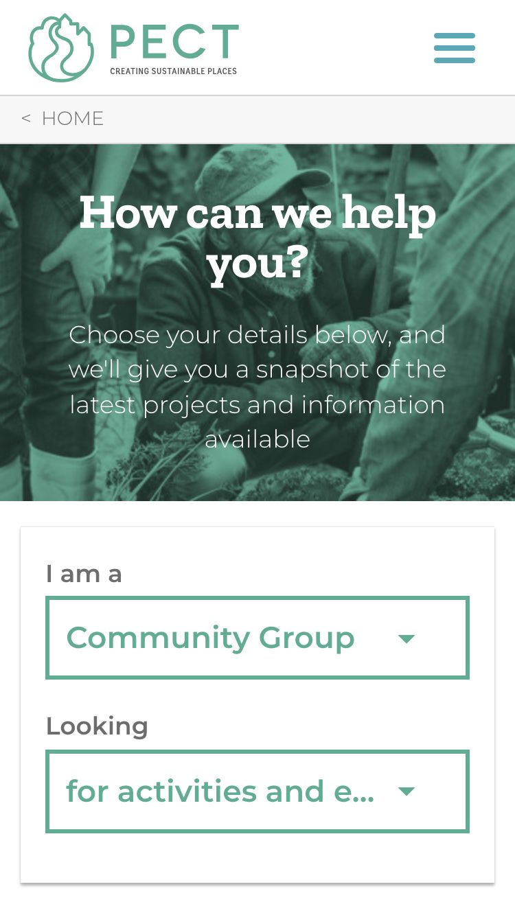 PECT wanted to engage with the public in new ways. We opened up their site to public submission, and also created a dynamic volunteer centre. Emphasis was on fundraising and donations, volunteer recruitment and getting audiences involved.